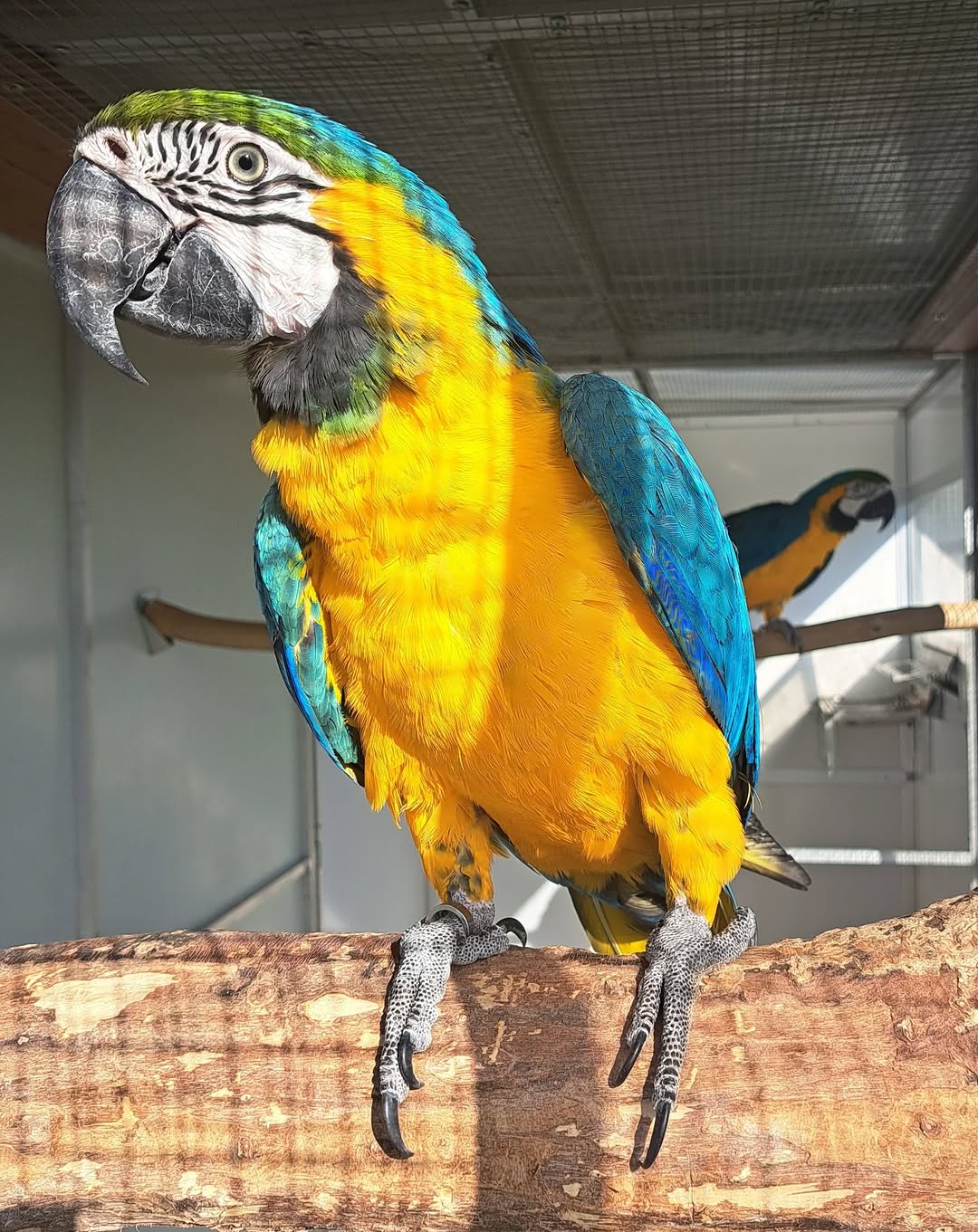 Macaws need significantly more space than a cage can provide to explore, stretch their wings, and maintain good mental and physical health. Unless you have a free-flight aviary, plan on allowing your macaw to move around freely.
